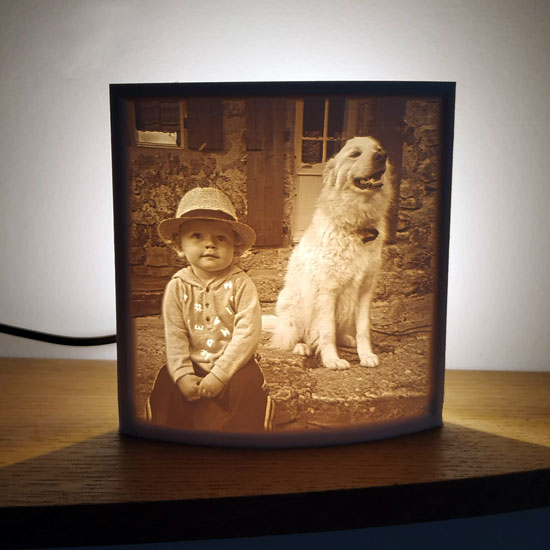 Magnifique mon impression d'une photo de famille. Je la laisse tout le temps allumée sur mon buffet. Merci Loire impression 3D.
